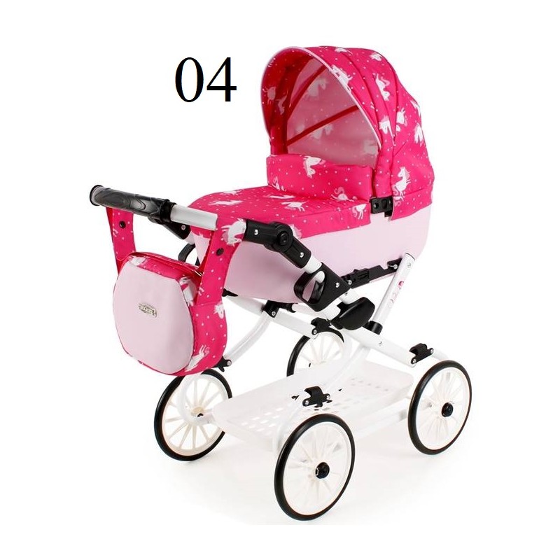 Uroczy wózek dla lalek - Adbor VIKI w różowym kolorze zachęca do kreatywnej zabawy i spacerów z lalką, rozwijając wyobraźnię i radość z opieki.