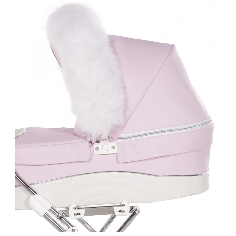 Piękna estetyka – miękkie, śnieżnobiałe futerko nadaje wózkowi wyjątkowego blasku.