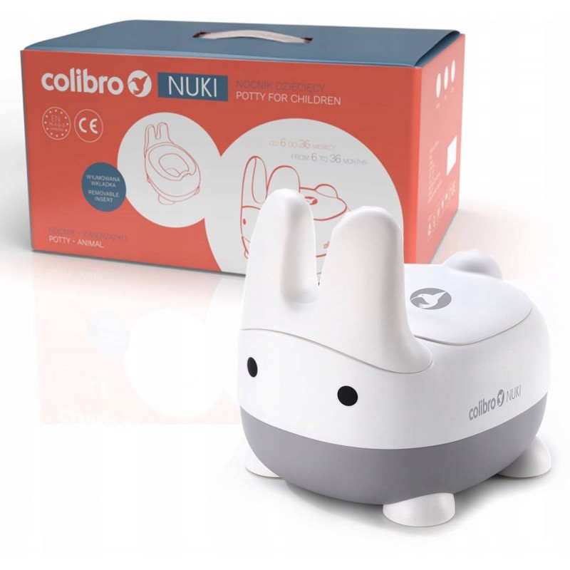 Nocnik dla dziecka w kolorze Cloud to idealne połączenie zabawy i nauki czystości. Jasny, stonowany odcień szarości pasuje do każdego wnętrza, a sympatyczny króliczek NUKI sprawia, że sikanie do nocnika staje się przyjemnością.