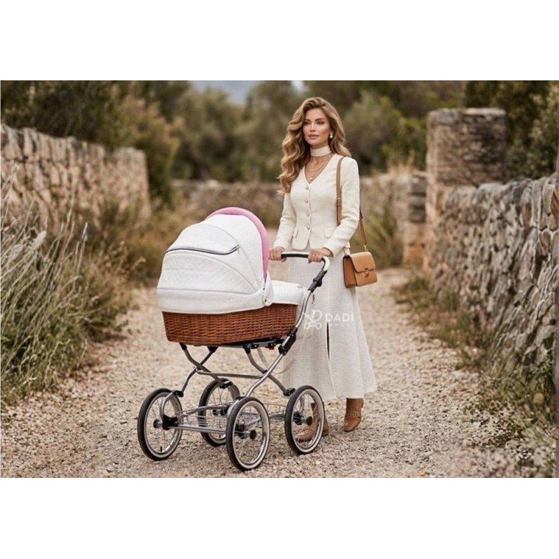 Przedstawiamy wózek dziecięcy w stylistyce retro 2w1 – Scarlett Baby Fashion, stworzony dla rodziców, którzy cenią naturalne materiały, klasyczny wygląd i wygodę w codziennym użytkowaniu. Połączenie gondoli i spacerówki sprawia, że wózek rośnie razem z dzieckiem, a jego ponadczasowa stylistyka retro i ręcznie pleciona wiklina nadają mu wyjątkowego charakteru.