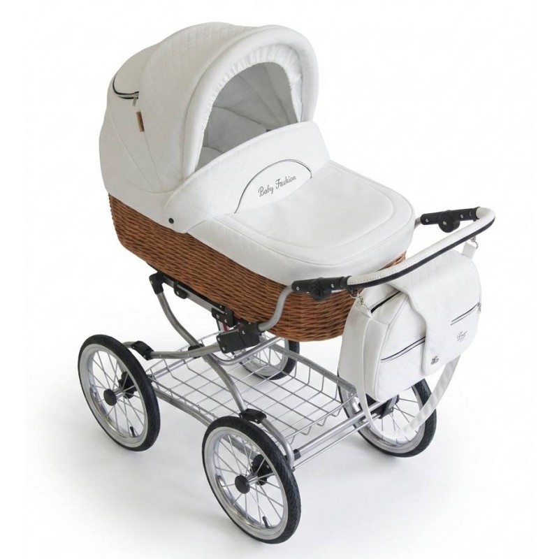 Klasyczny wózek retro z ręcznie plecioną wiklinową gondolą