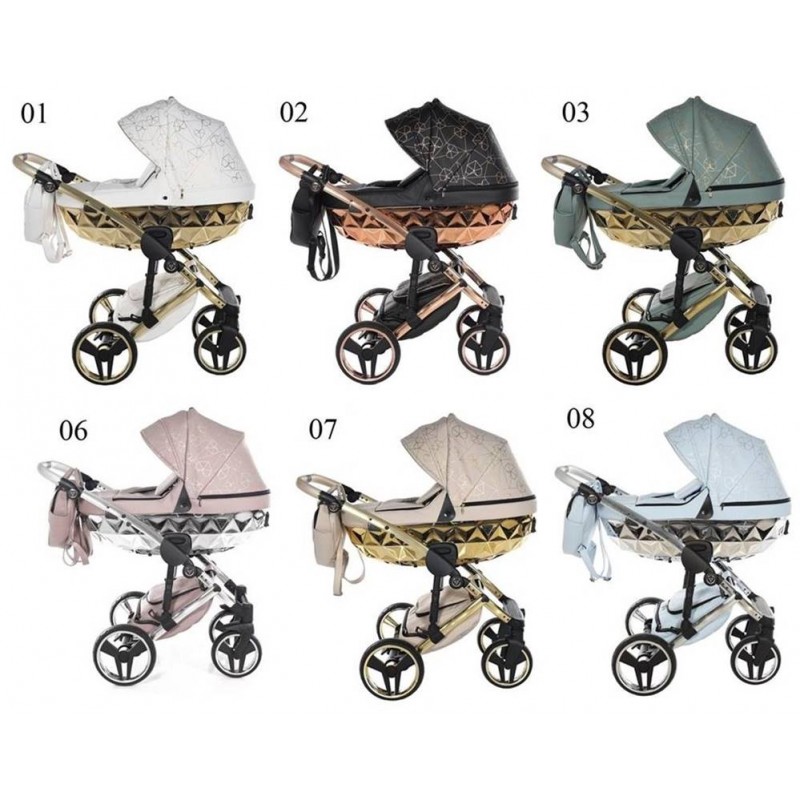 STYLOWY wózek dziecięcy JUNAMA HEART™ 2w1 Zupełnie nowa propozycja firmy JUNAMA™ HEART to wielofunkcyjny luksusowy wózek dziecięcy o lustrzanym wykończeniu. NIEPOWTARZALNY wózek HEART skradnie nie jedno serce mamy. Wózek został wykonany z eco skóry, a całość została umieszczona na lustrzano złotym stelażu. Przedstawiamy nową odsłonę linii Diamond - wózek HEART.