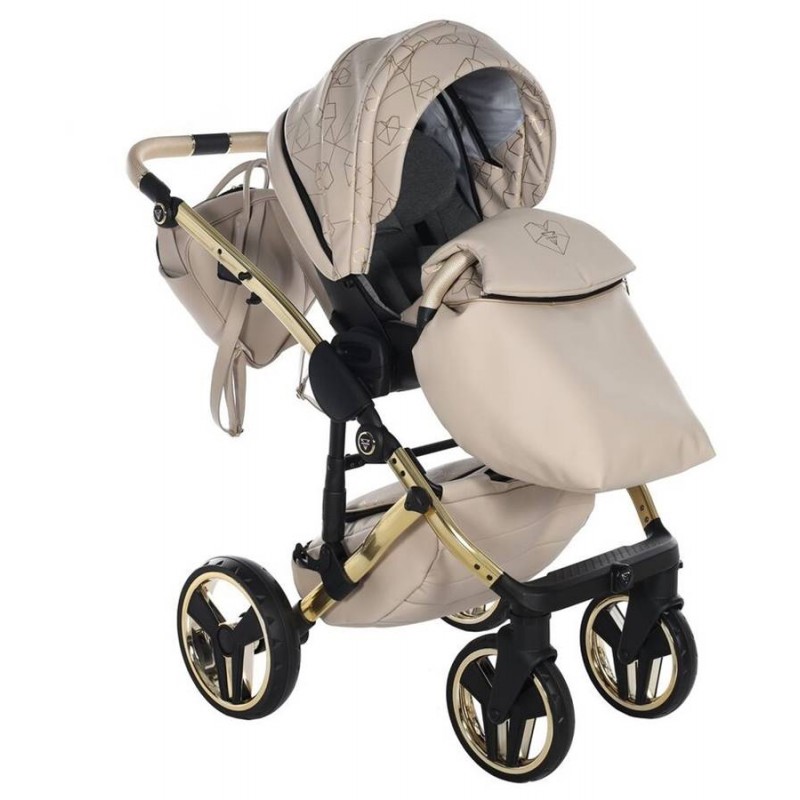 Junama Heart – Wózek Dziecięcy 3w1 (07 Beżowy) Premium z Gondolą 3D Diamond