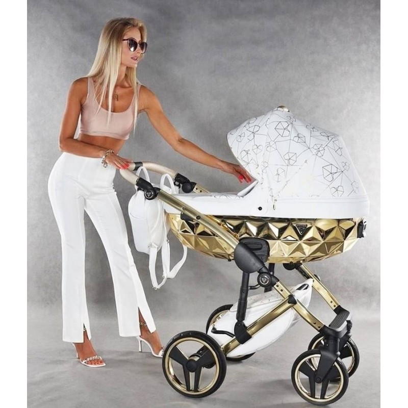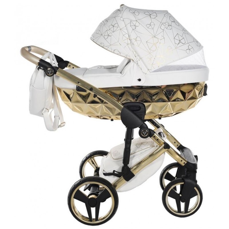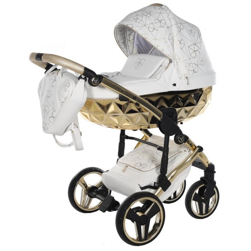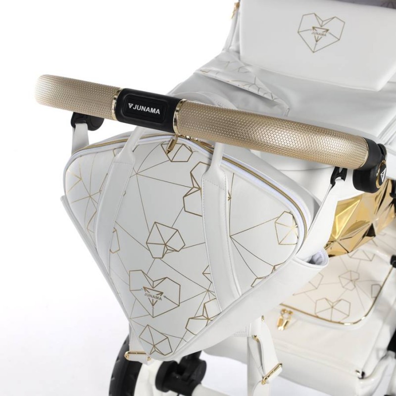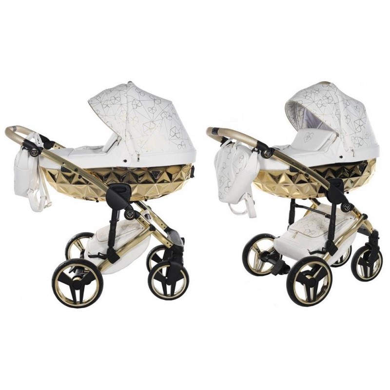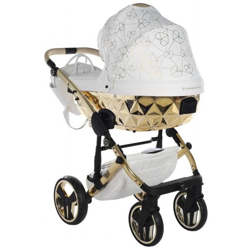 Junama Heart Diamond 01 Biało złoty wózek dziecięcy 2w1, który olśni swoim niezwykłym designem, doskonałym wykonanie oraz bezpieczeństwem Twojego dziecka. Zestaw 2w1 to gondola, spacerówka oraz oryginalne akcesoria. Do tego wiele wspaniałych kolorów do wyboru.
