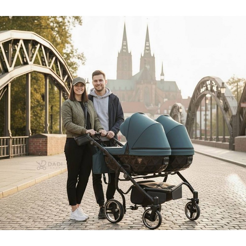 Junama Diamond Basic Duo 3w1 to wózek bliźniaczy, który łączy nowoczesny design, funkcjonalność i komfort, sprawiając, że każdy spacer staje się przyjemnością zarówno dla dzieci, jak i rodziców. Elegancja w parze z praktycznością – idealny wybór dla aktywnych rodzin ceniących styl i wygodę.