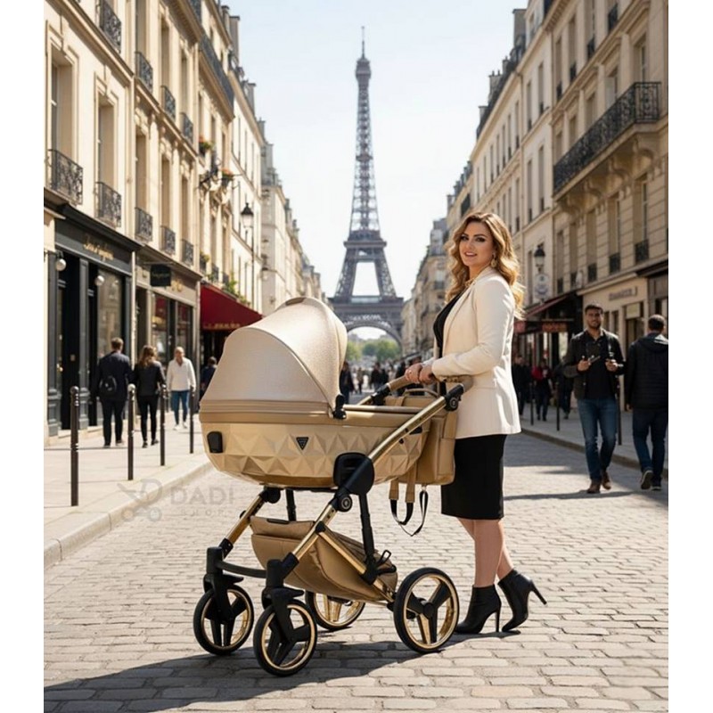 Junama Dolce Gold 3w1 to kwintesencja elegancji i komfortu – wózek, który łączy złoty blask luksusu z codzienną funkcjonalnością. Stworzony dla rodziców, którzy pragną stylu i niezawodności w jednym.