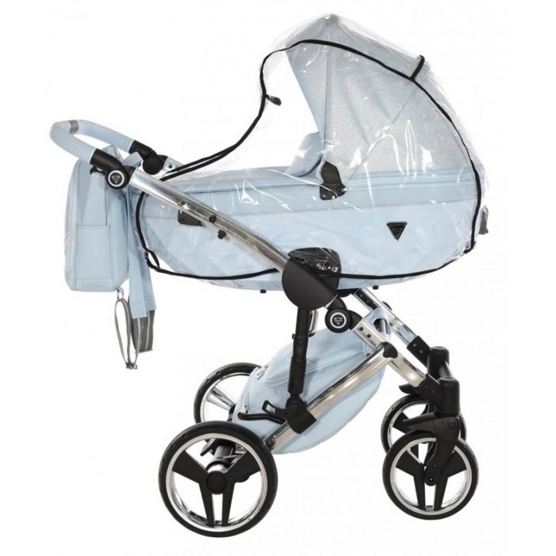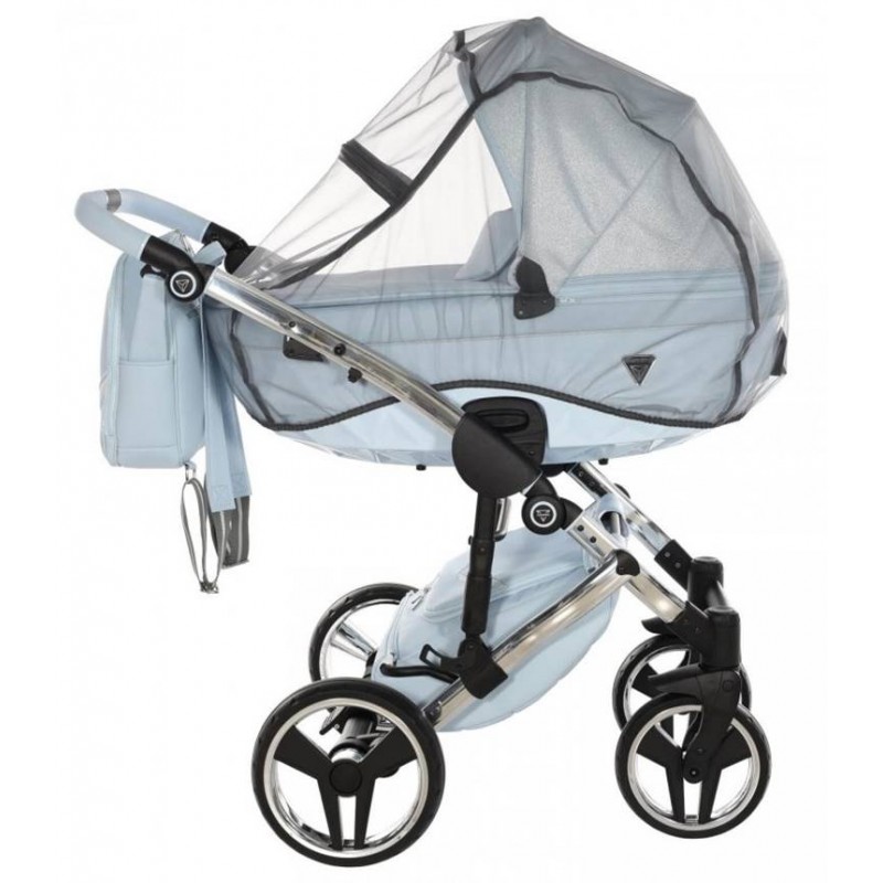 Moskitiera w Junama Dolce chroni dziecko przed owadami, zapewniając spokojne i komfortowe spacery. Folia przeciwdeszczowa w Junama Dolce zapewnia ochronę przed deszczem i wiatrem, dzięki czemu spacery są przyjemne w każdą pogodę.