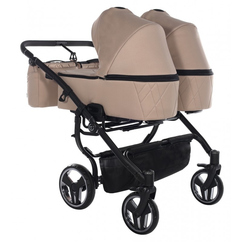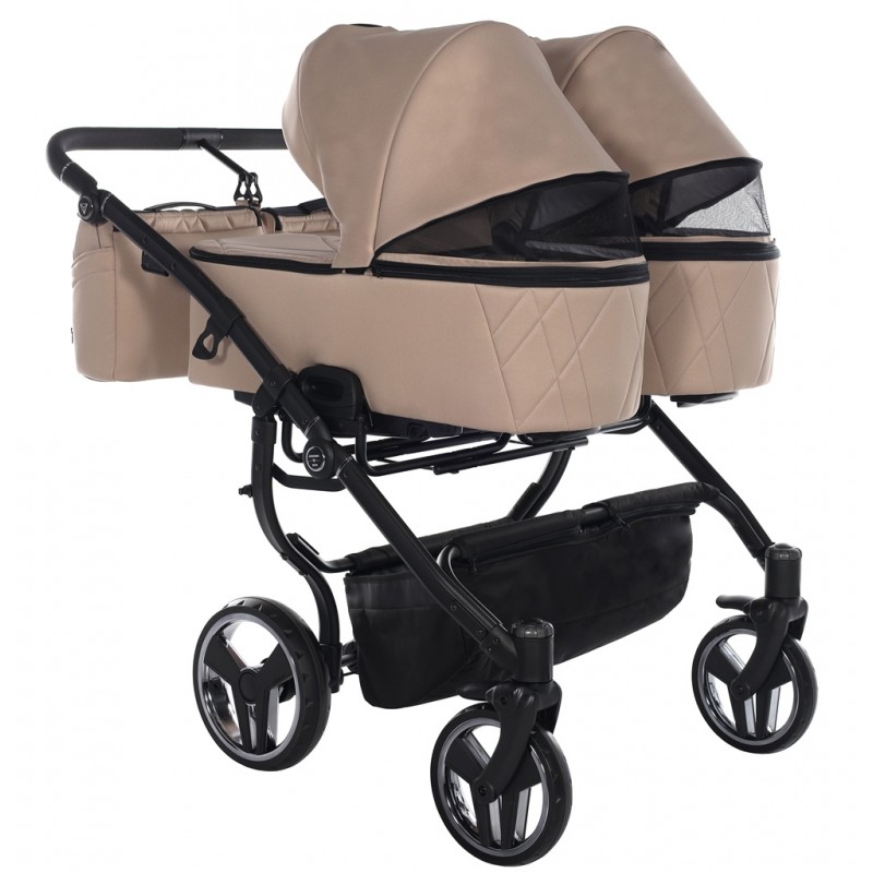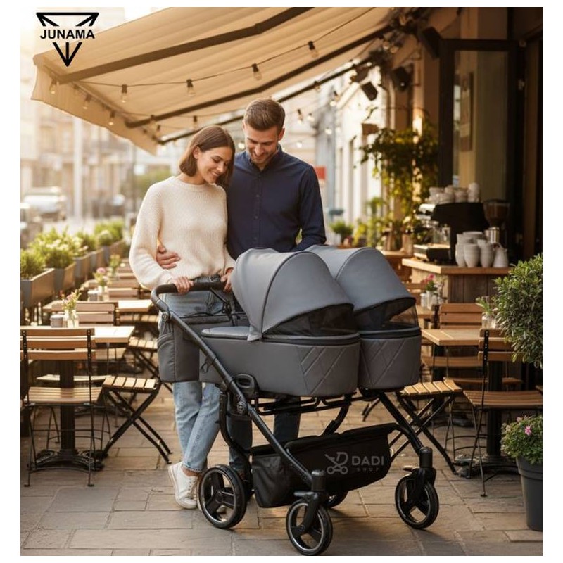 Wózek bliźniaczy Junama Duo V3 z dwiema gondolami zapewnia komfortową i bezpieczną podróż dla obu maluchów od pierwszych dni życia.