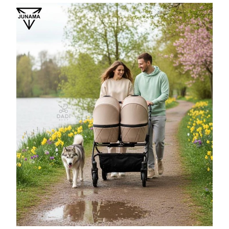 Radość, bliskość i wspólne chwile – Junama Duo V3 sprawia, że każdy spacer z bliźniakami staje się wyjątkowy.