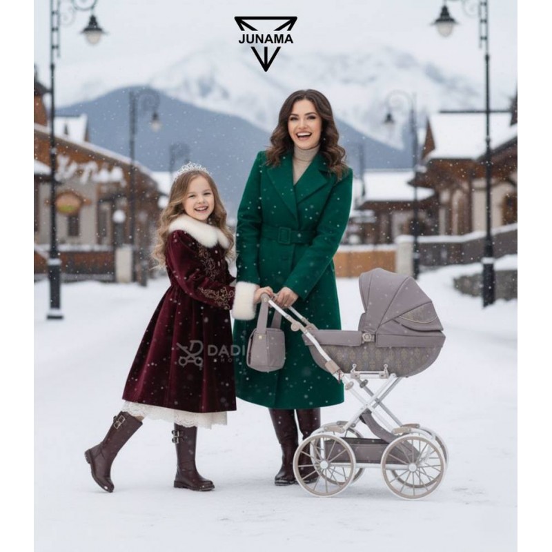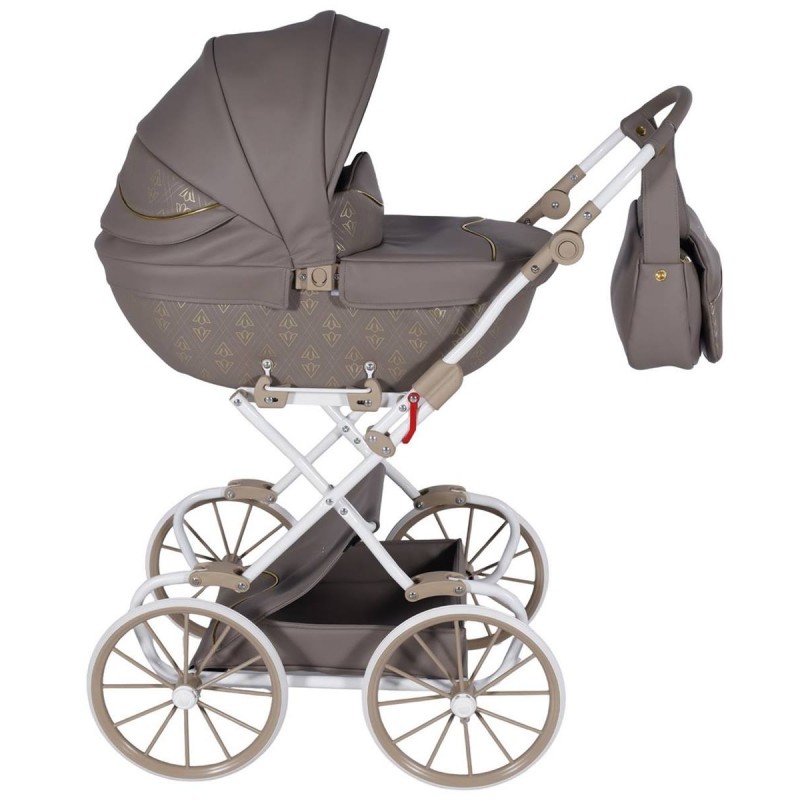 Model Junama Art Deco Mini inspirowany jest prawdziwymi wózkami dziecięcymi Junama. Jego stylowy, retro design przyciąga wzrok i zachwyca subtelnym połączeniem eleganckiej ekoskóry z delikatnymi zdobieniami. Wózek wygląda jak miniaturowa, luksusowa wersja prawdziwego wózka dla dorosłych.