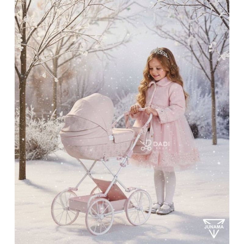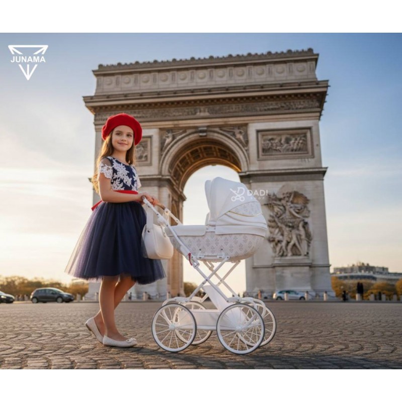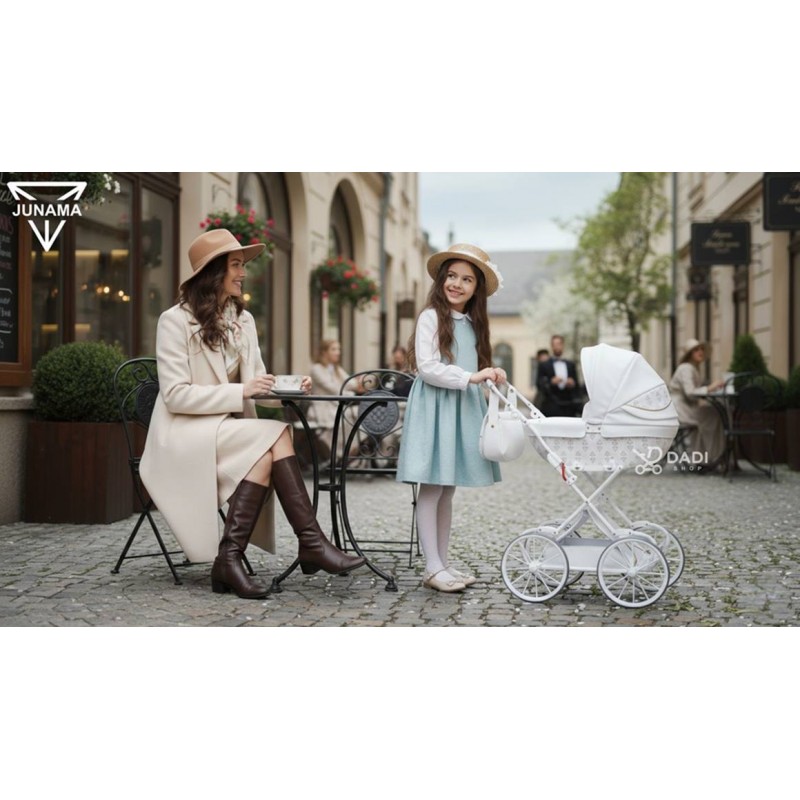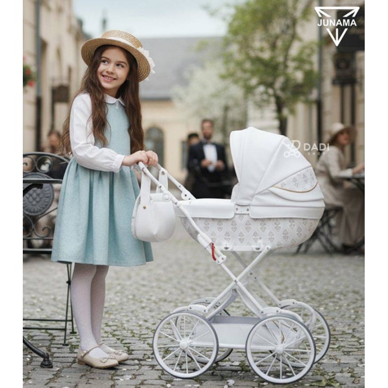 Pozwól swojej córeczce poczuć się jak prawdziwa mama. Junama Art Deco Mini 01 to biały wózek dla lalek w stylu retro, który zachwyca elegancją, lekkością i wyjątkową dbałością o każdy detal. Idealny dla starszej lub wysokiej dziewczynki, która kocha styl i zabawę z klasą.