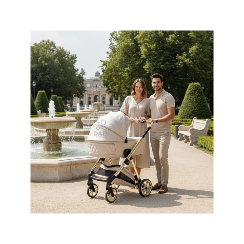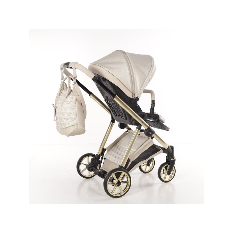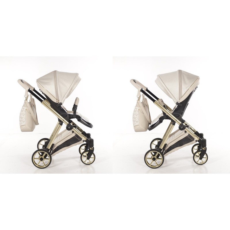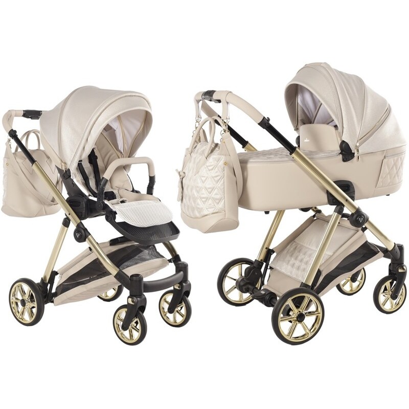 Junama Ellegante Lame! Złoto-beżowy, luksusowy wózek 2w1. Amortyzacja i elegancki design. Komfort dla dziecka, styl dla rodzica!