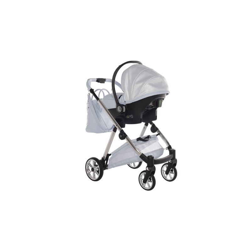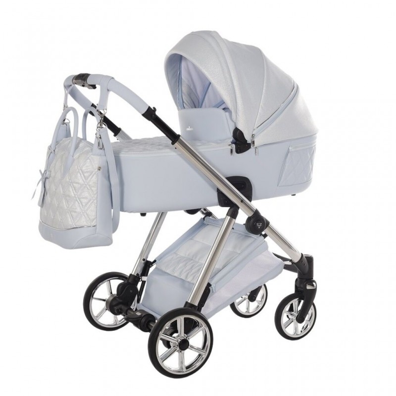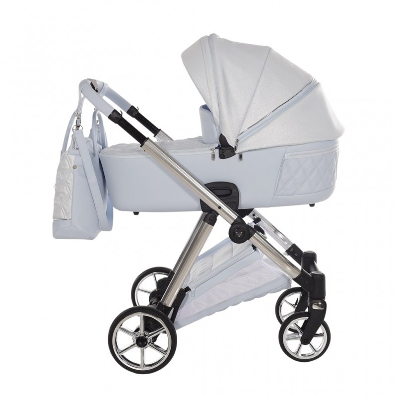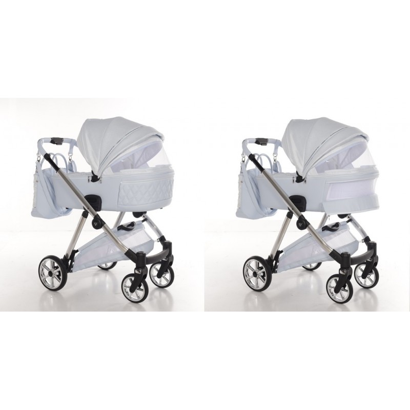 Junama Ellegante Lame w odcieniu Light Blue! Luksusowy wózek 4w1 ze srebrnym stelażem. Perfekcja i elegancja dla każdego dziecka!