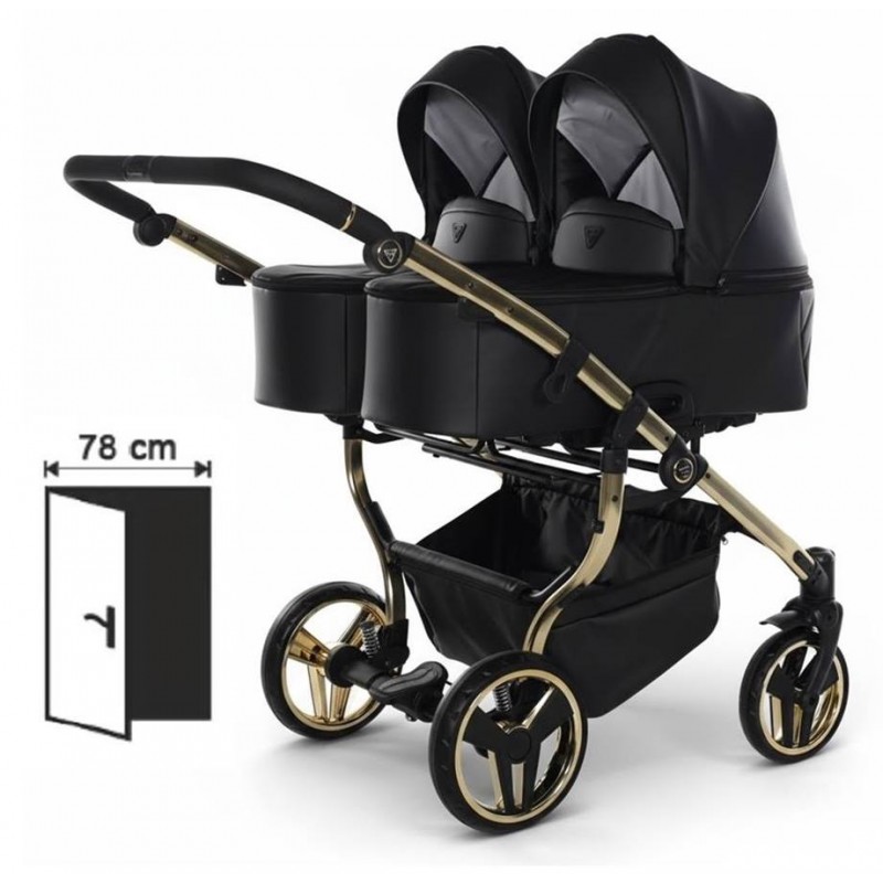 Przestronne gondole Junama Duo V3 Eco, wózek bliźniaczy 78 cm black & gold, komfort i elegancja.