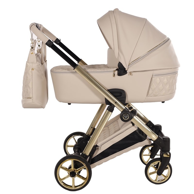 Bezpieczeństwo w luksusowym stylu. Gondola Junama Ellegante Art Deco 02 Beige łączy solidną konstrukcję, elegancki design i komfort malucha.