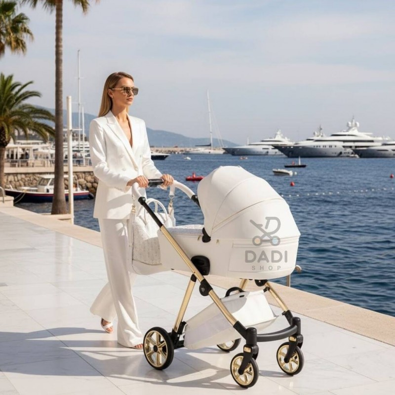 Junama Ellegante Art Deco 04 White 3w1 – luksusowy biały wózek dziecięcy z gondolą, spacerówką i fotelikiem Avionaut Cosmo. Elegancki design w stylu Art Deco, pełen komfort i bezpieczeństwo od pierwszych dni życia dziecka, płynna amortyzacja i solidna konstrukcja sprawiają, że każdy spacer jest przyjemnością. Przestronna gondola, wygodna spacerówka i fotelik Cosmo tworzą kompletny system 3w1, idealny dla nowoczesnych rodziców ceniących funkcjonalność, styl i praktyczne rozwiązania.