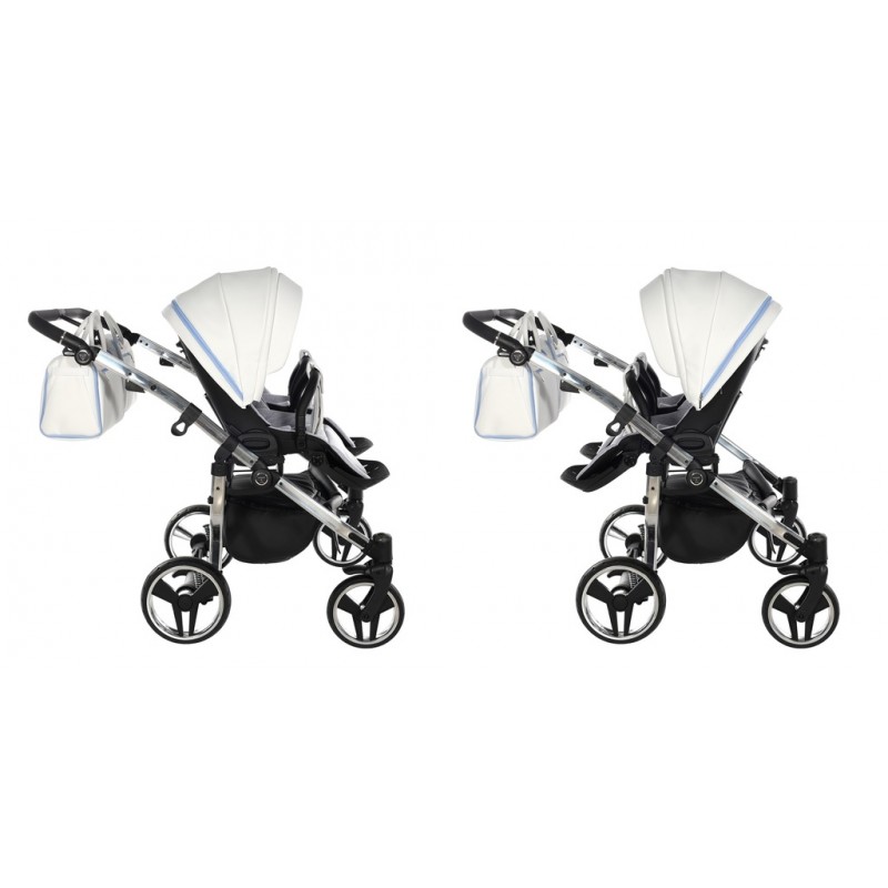 Junama Candy Duo V2 02 Blue 2w1 to wszechstronny, bezpieczny i stylowy wózek bliźniaczy, idealny od narodzin aż po etap spacerowy.