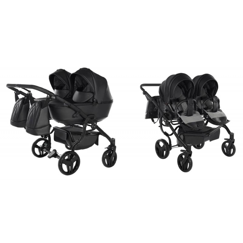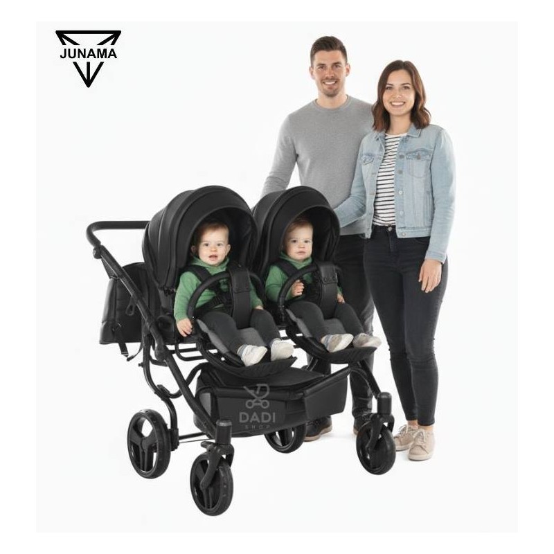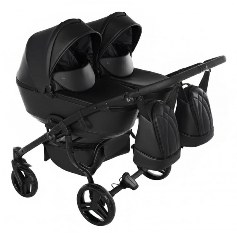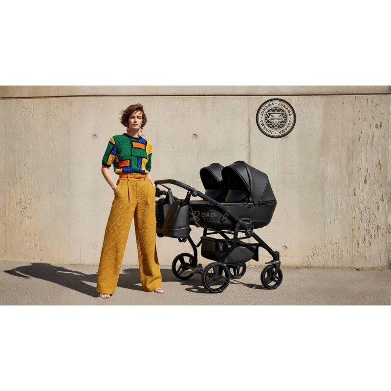Junama Space Duo Eco 03 Black to więcej niż wózek – to manifest nowoczesnego rodzicielstwa. Surowa elegancja czarnej eko-skóry spotyka się tu z bezkompromisową konstrukcją side-by-side.