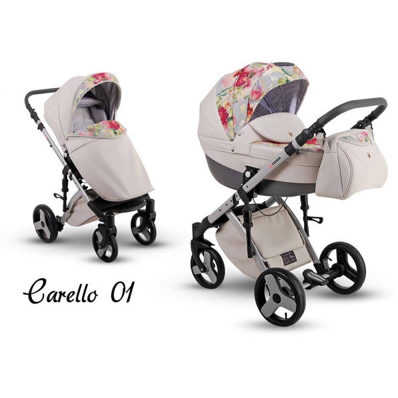 Wózek dziecięcy wielofunkcyjny CARRELO firmy Lonex wykonany jest z tkanin żakardowych najwyższej jakości. Żakardy cechuje duża odporność i wytrzymałość, dobra przepuszczalność powietrza oraz łatwość w utrzymaniu czystości. Rączka wózka została obszyta wysokogatunkową eko skórą. Wóżek jest elegancki i ponadczasowy. Wzory na budce wózka dodają mu piękna oraz podkreślają pełne wyrazu kolory. CARRELO to nie tylko piękny i niepowtarzalny wózek ale również funkcjonalny i bezpieczny.