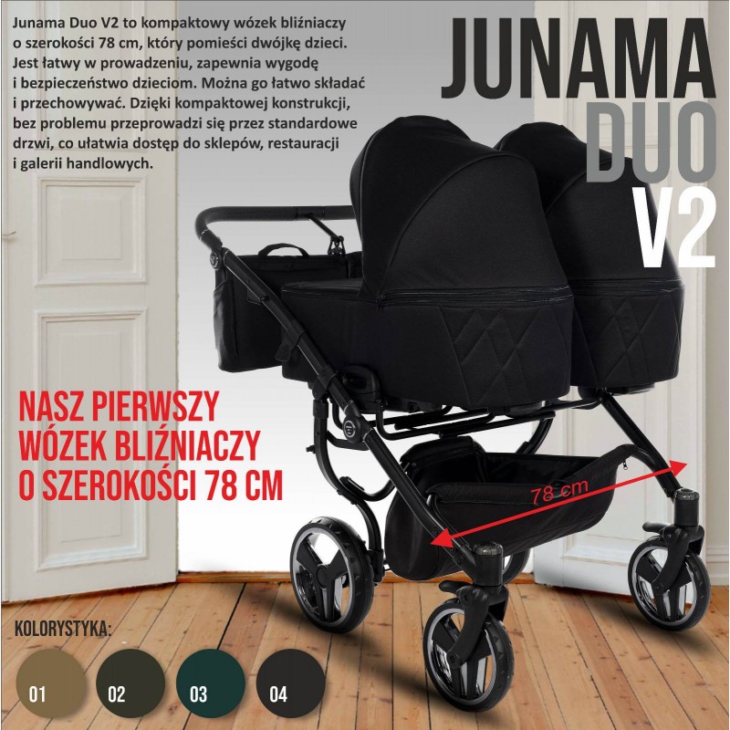 Odkryj codzienną wygodę i styl – Junama Duo V3 3w1 to wózek bliźniaczy, który łączy funkcjonalność z elegancją w każdej sytuacji.