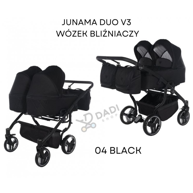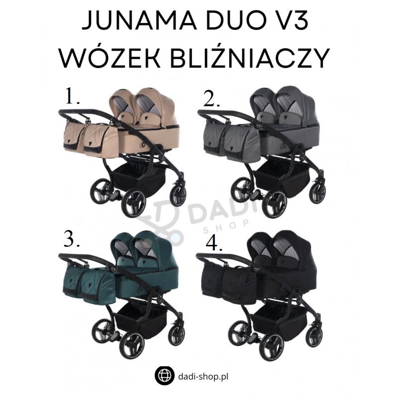 Junama duo v3 wózek bliźniaczy 3w1 to kompletny zestaw, który zawiera: