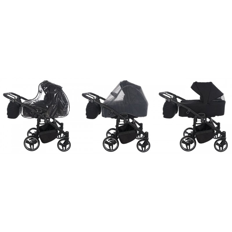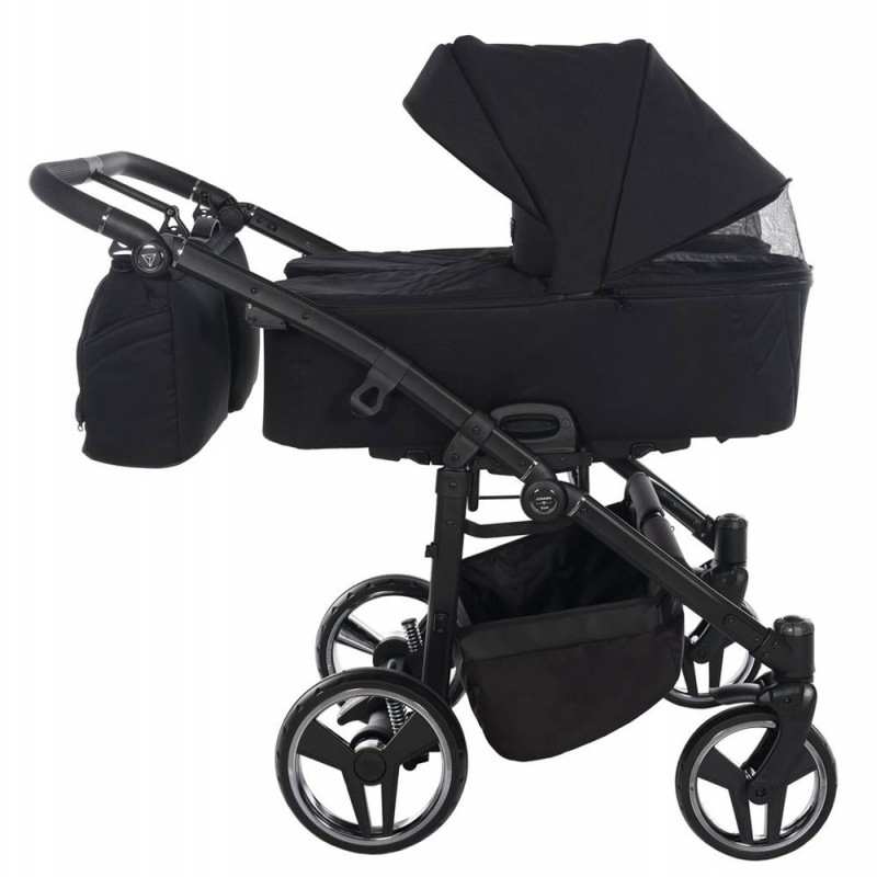 wózek bliźniaczy Junama Duo V3 Eco 3w1 widok z profilu, okno wentylacyjne, kolor 04 Black, Dadi-Shop.