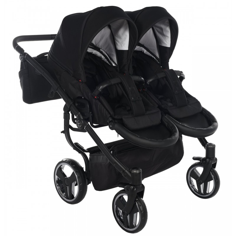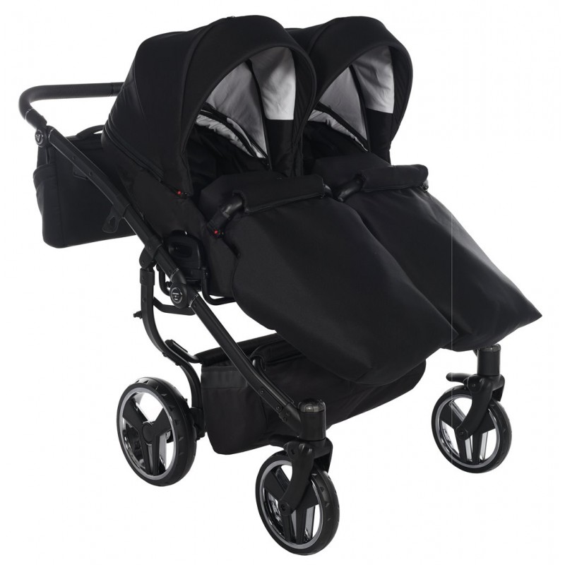 Junama Duo V3 w eleganckiej czerni – idealny wózek dla bliźniaków, gotowy na codzienne spacery z rodziną w plenerze.