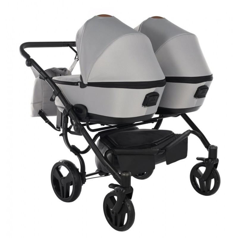 Funkcjonalny Duo Space 01 z żelowymi kołami i stelażem gwarantuje wygodę prowadzenia i komfortowy spacer dla bliźniąt w każdych warunkach.