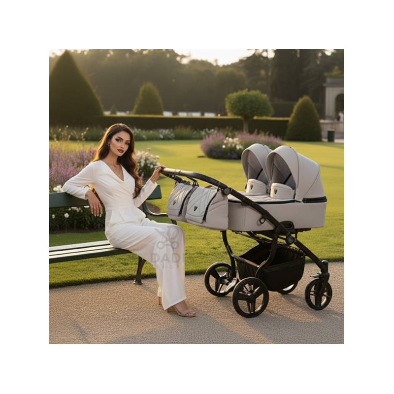 Duo V3 Eco został zaprojektowany z myślą o rodzicach bliźniaków, którzy cenią komfort, styl i praktyczne rozwiązania w codziennym życiu. Wózek jest wykonany z wysokiej jakości ekoskóry, co nadaje mu elegancki wygląd, ułatwia czyszczenie i zwiększa trwałość.