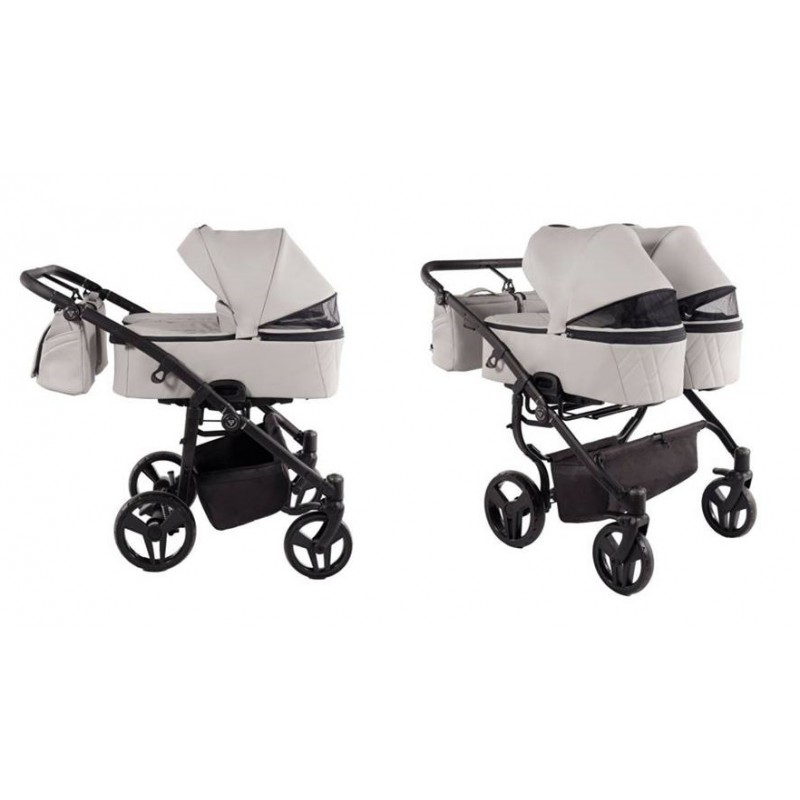 Junama Duo V3 Eco 01 Szary – wózek bliźniaczy 2w1, który łączy elegancję, komfort i funkcjonalność, idealny na codzienne spacery z bliźniakami