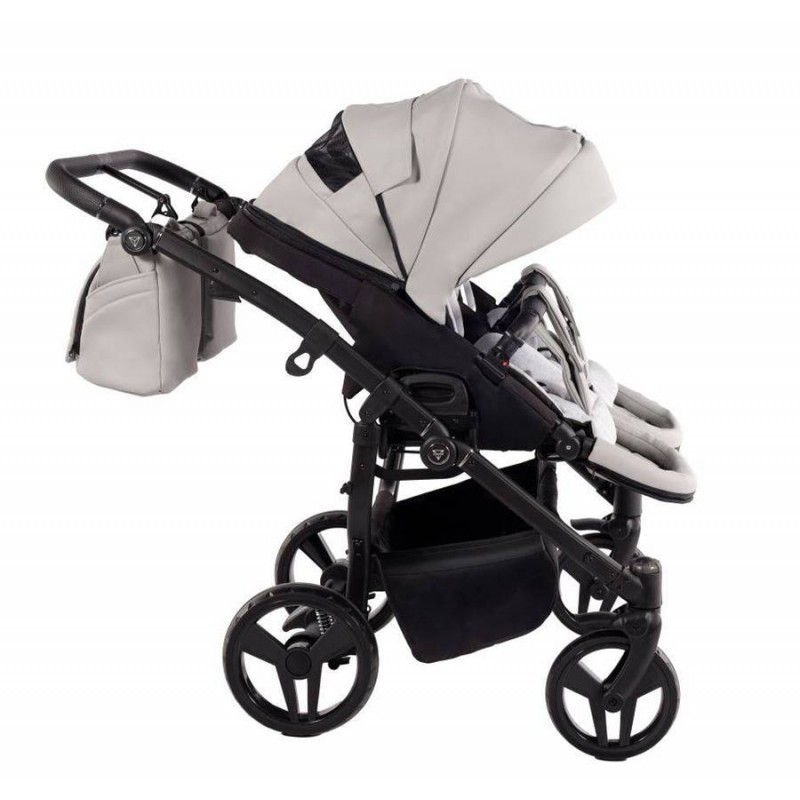 ➡️ Wózek bliźniaczy Junama Duo V3 Eco 3w1 01 Szary łączy elegancję, komfort i praktyczne rozwiązania.