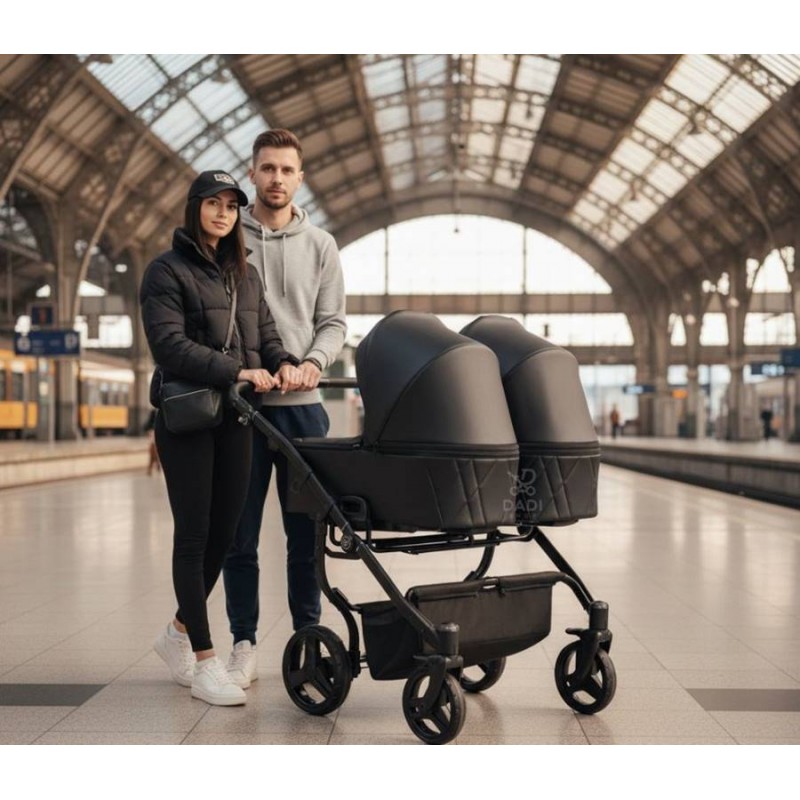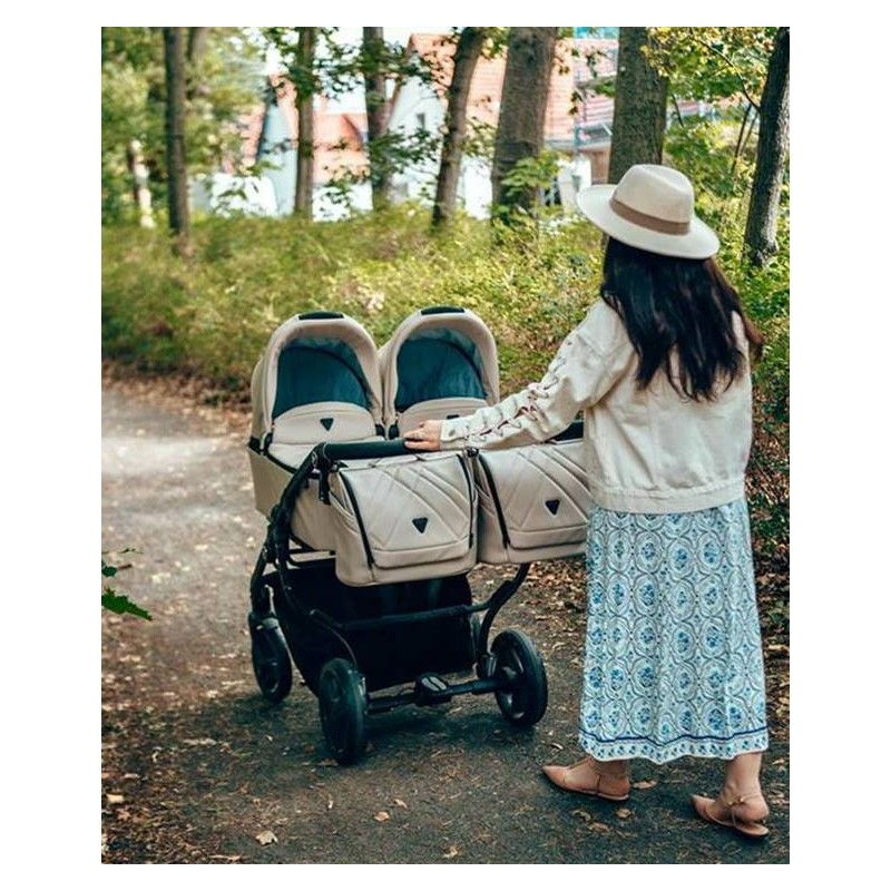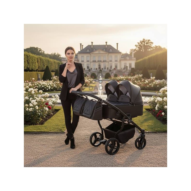 To wózek bliźniaczy, który łączy elegancję, komfort i praktyczne rozwiązania. Idealny dla aktywnych rodzin w mieście i podczas spacerów, z funkcją gondoli, spacerówek i fotelików samochodowych w zestawie. Każda podróż z dwójką maluszków staje się spokojna, stylowa i pełna komfortu.