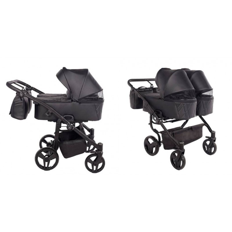 Wózek bliźniaczy 4w1 Black łączy elegancję z wygodą codziennych spacerów w każdej przestrzeni!