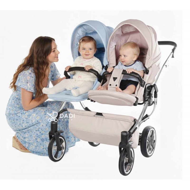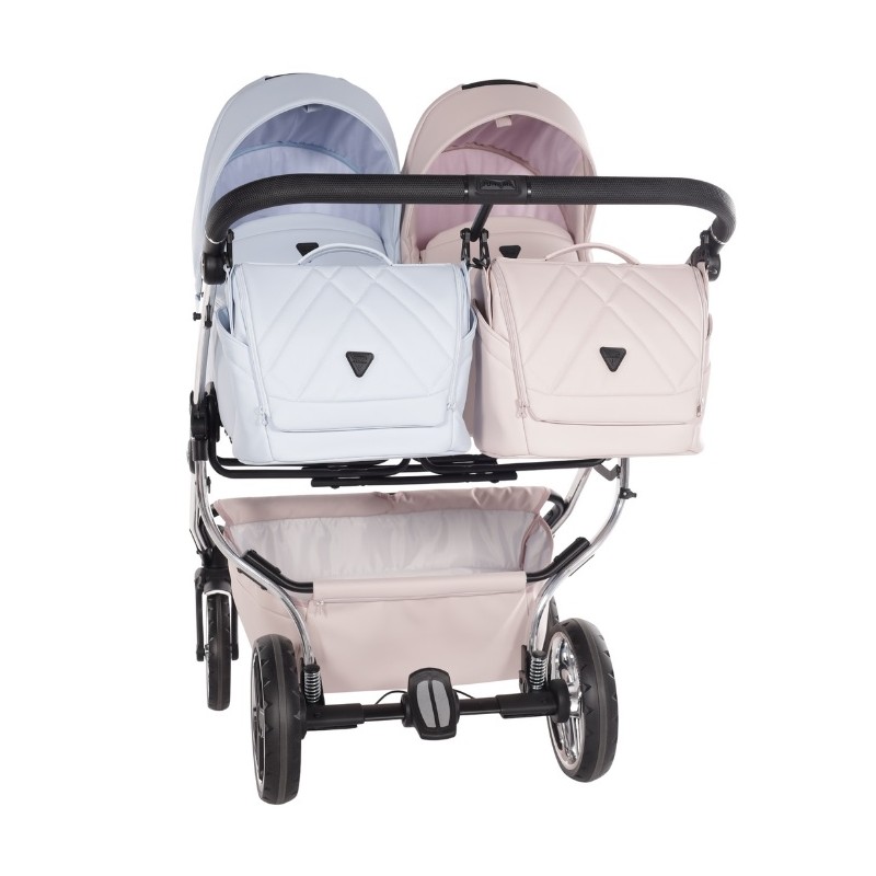 Każdy element zestawu został zaprojektowany tak, aby tworzyć spójną, funkcjonalną całość, która ułatwia codzienne spacery z bliźniętami i daje rodzicom pełną swobodę użytkowania.