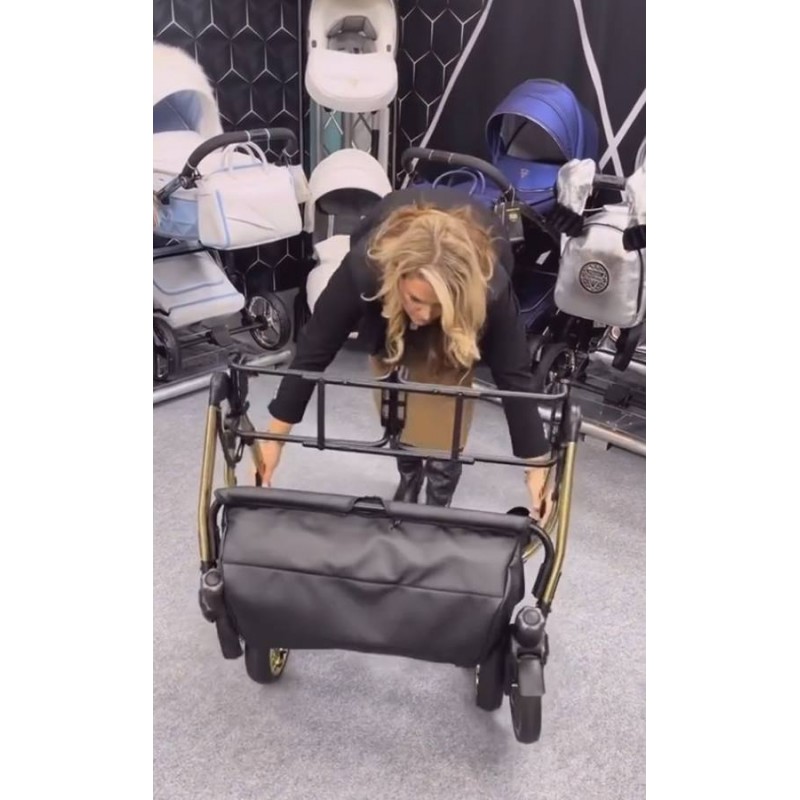 Proste składanie stelaża jednym ruchem – wygoda i oszczędność czasu dla rodzica. (prezentacja na podstawie koloru czarnego)