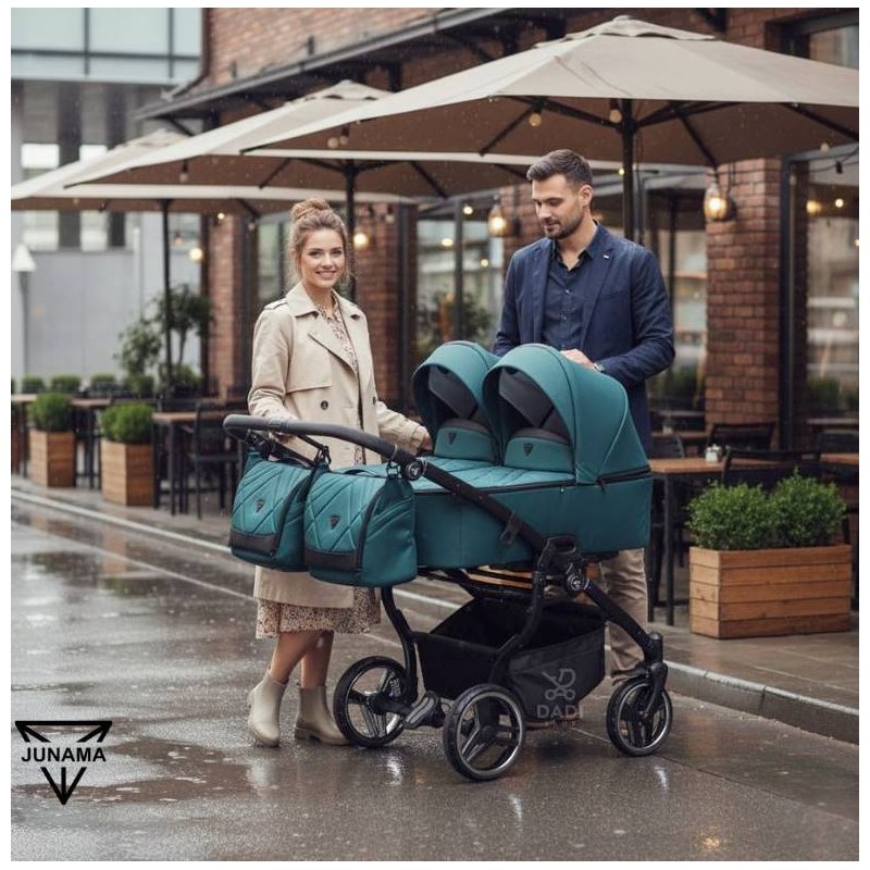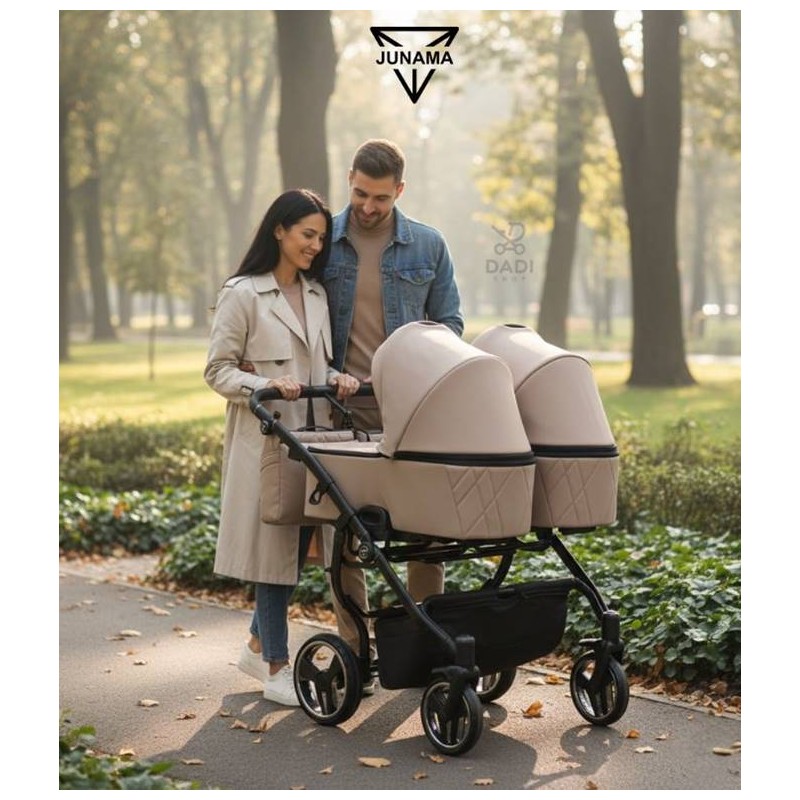 Wózek Junama Duo V3 – idealny na rodzinne spacery i wspólne chwile z bliźniakami.