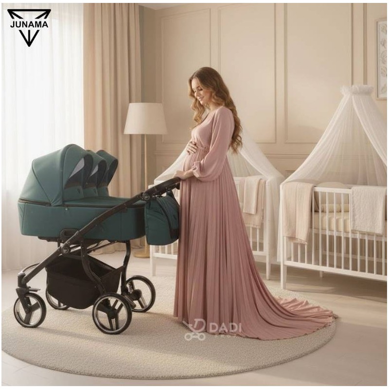 Wózek bliźniaczy Junama Duo V3 z dwiema gondolami zapewnia komfortową i bezpieczną podróż dla obu maluchów od pierwszych dni życia.