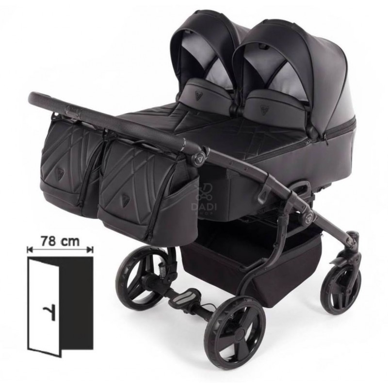 Kompaktowy Junama Duo V3 Eco 3w1 78 cm zmieści się w każde drzwi, zapewniając komfortowe spacery z dwójką dzieci.