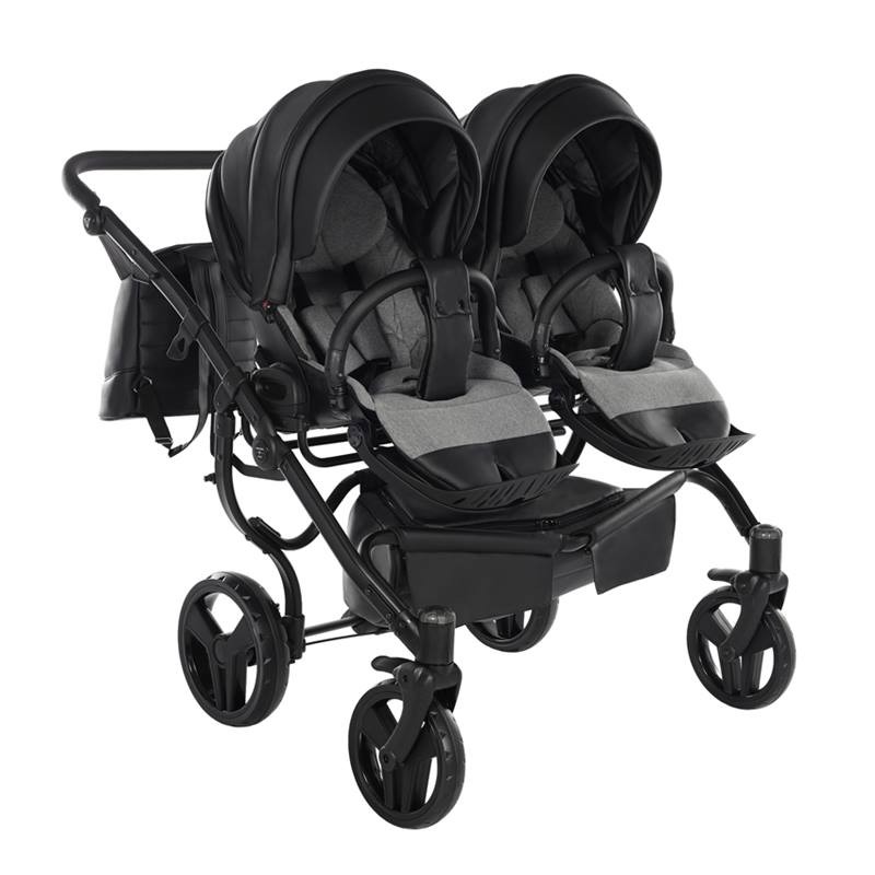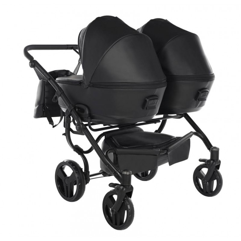 Elegancka, czarna eko skóra nadaje wózkowi ponadczasowy charakter, a jednocześnie sprawia, że jest on wyjątkowo praktyczny w codziennym użytkowaniu. To polski produkt klasy premium, zaprojektowany z myślą o realnych potrzebach rodziców bliźniąt.