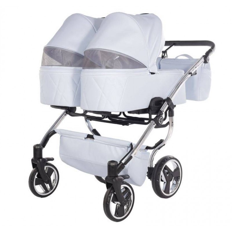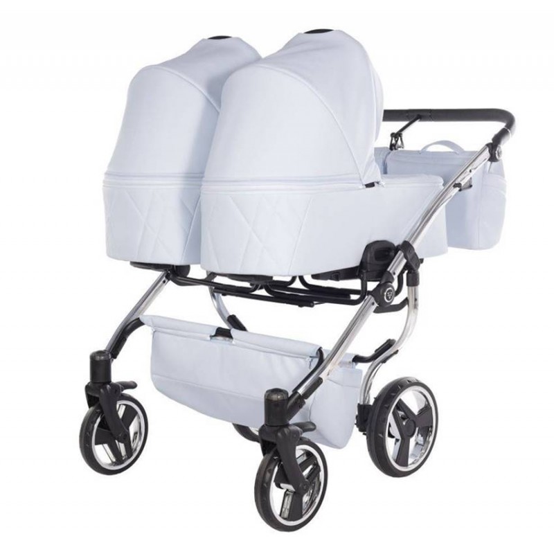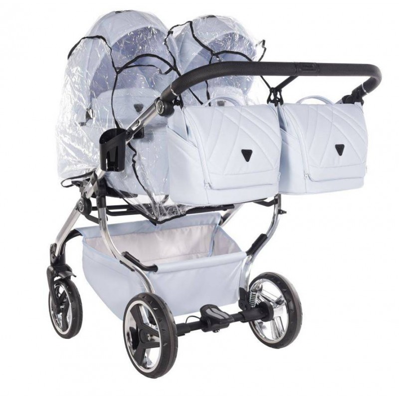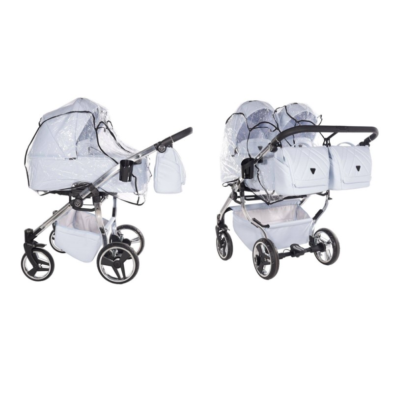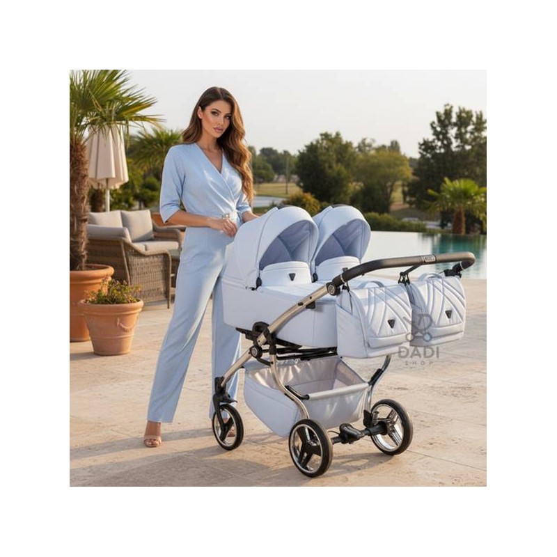 To wózek bliźniaczy, który łączy elegancję, komfort i praktyczne rozwiązania. Idealny dla aktywnych rodzin w mieście i podczas spacerów, z funkcją gondoli, spacerówek i fotelików samochodowych w zestawie. Każda podróż z dwójką maluszków staje się spokojna, stylowa i pełna komfortu.