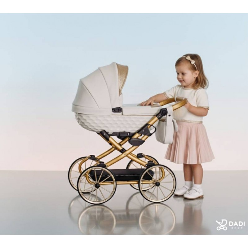 Ta śliczna zabawka została wykonana z wysokiej jakości wikliny, a wnętrze wózka obszyte jest wysokiej jakości miękką bawełną ze zdobieniami. Uroku dodaje gustowny,koronkowy daszek w kolorze kości słoniowej. Uchwyt z lakierowanego drewna, metalowa rama oraz duże szprychowe koła dodają funkcjonalności zabawce. Ten piękny wózek dostarczy dużo radości każdej małej dziewczynce. Idealny prezent dla młodej damy.