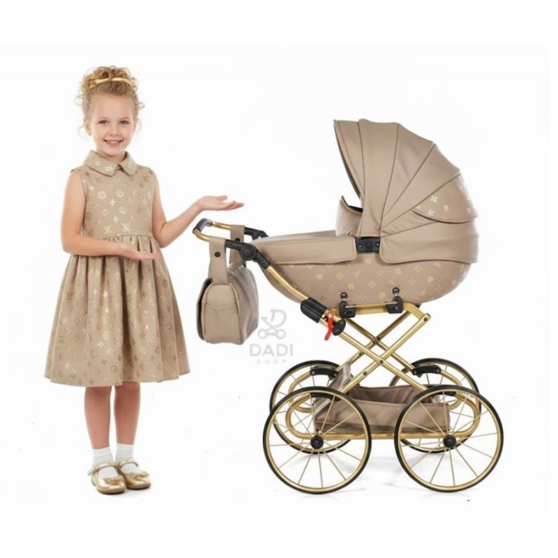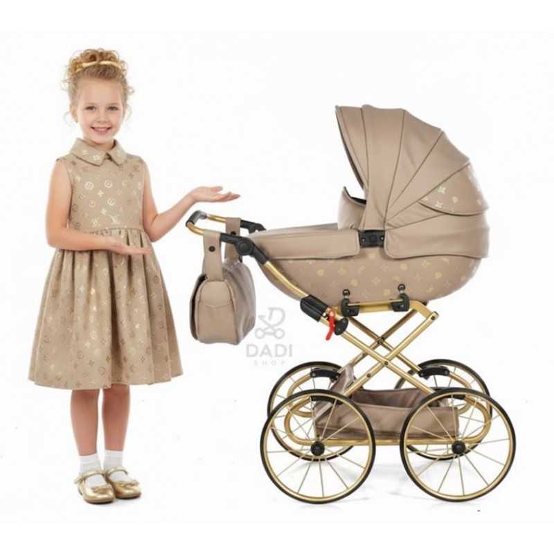 Wykonany z trwałych materiałów i wykończony tapicerką z eleganckiej eko skóry, zachwyca dbałością o detale i pięknym wzorem. Duże koła w stylu retro oraz miękkie zawieszenie sprawiają, że wózek prowadzi się lekko i stabilnie – nawet po nierównym terenie. Idealny dla dzieci od 3 do 10 lat, rozwija wyobraźnię, uczy empatii i gwarantuje stylową zabawę każdego dnia.
