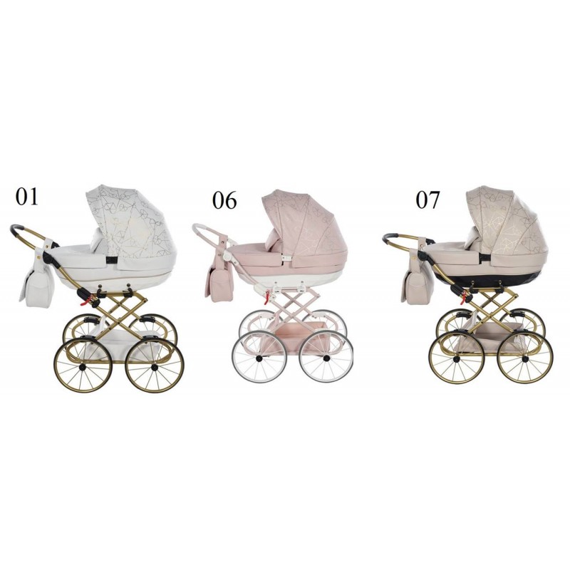 Tapicerka z wysokiej jakości eko skóry nie tylko pięknie się prezentuje, ale też jest odporna na wilgoć i wyjątkowo łatwa w czyszczeniu — wystarczy przetrzeć wilgotną ściereczką, by znów wyglądała jak nowa. Urocze serduszka na tkaninie dodają wózkowi romantycznego charakteru, który zachwyci każdą małą opiekunkę lalek.