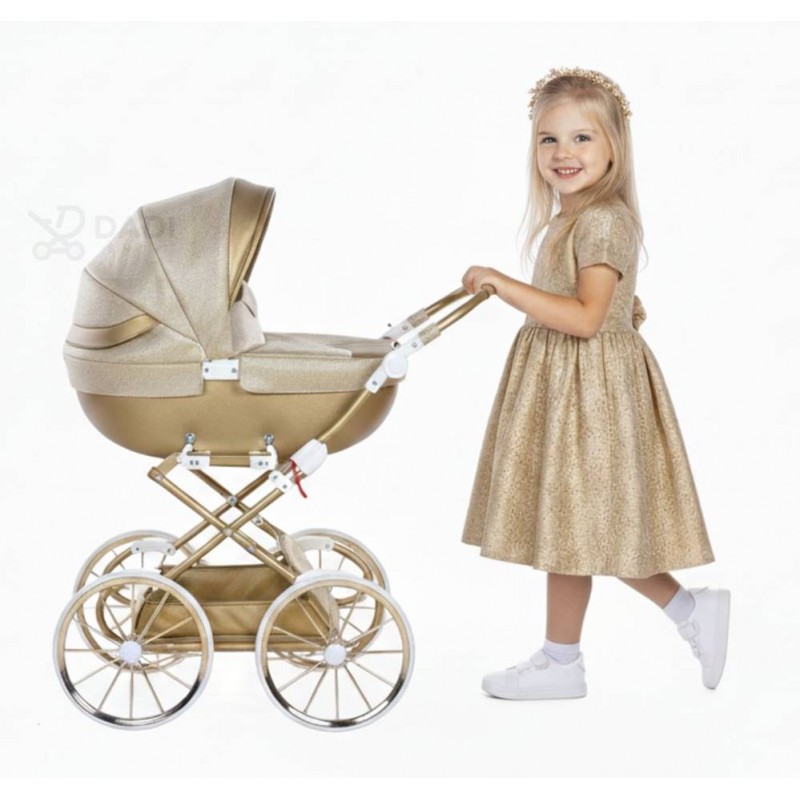 Duża gondola i elegancka tapicerka sprawiają, że wózek wygląda jak prawdziwy – idealny dla małych miłośniczek stylu retro