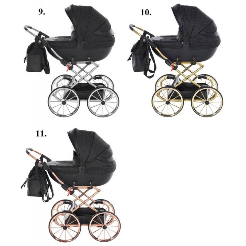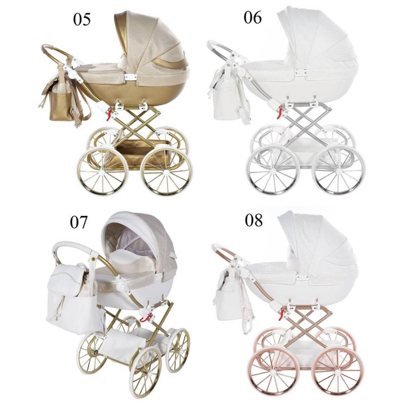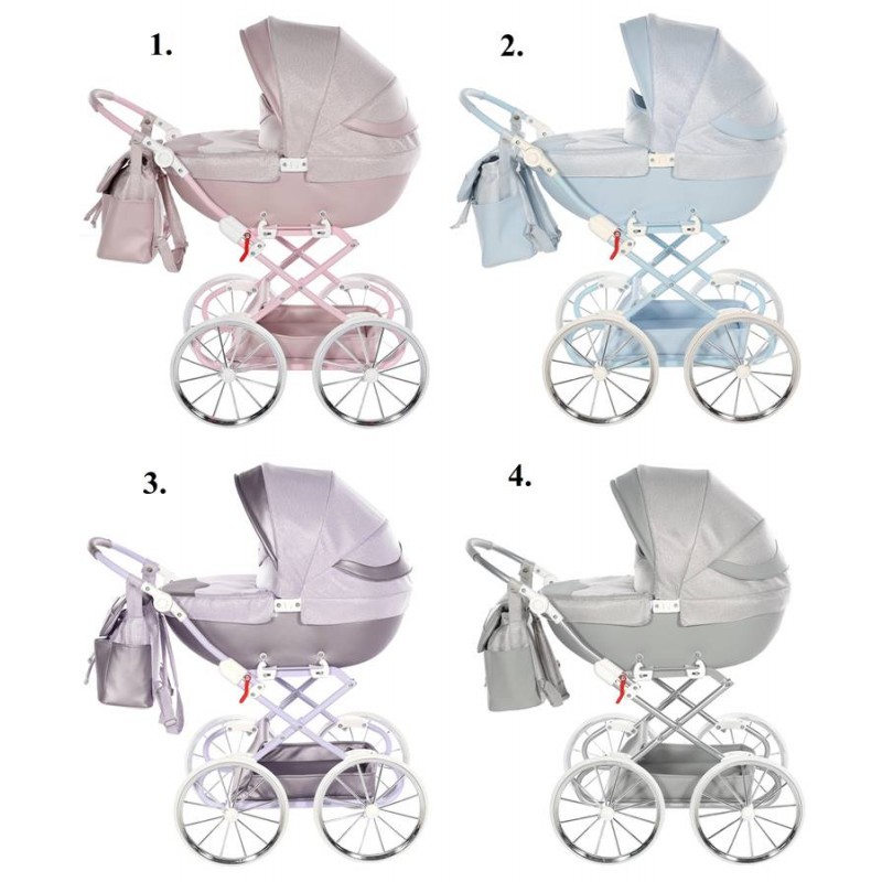 ⭐ Zabawka dla dziewczynki - wózek dla lalek DOLCE MINI z dużymi smukłymi kołami retro. Wózki lalkowe od polskiego producenta TAKO to klasa sama w sobie. Firma stworzyła wersję Mini na podstawie modelu Dolce JUNAMA. Ten wózek dla lalek wygląda jak prawdziwy, posiada głęboką gondolę oraz regulowaną rączkę do wzrostu dziecka. Składany wózek dla lalek to idealny prezent dla małej dziewczynki to właśnie wózek głęboko spacerowy od TAKO. Kolor 04 silver to wózek dla lalek z eco skóry w kolorze srebrnym z białymi detalami tworzy iście królewski zestaw utrzymany w tradycyjnej stylistyce.
