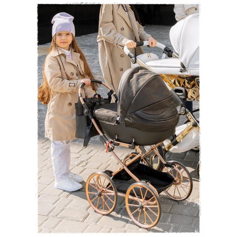 Dolce Mini to wózek, który łączy uroczy wygląd z funkcjonalnością – stabilny na różnych powierzchniach, idealny do zabawy w domu i na dworze