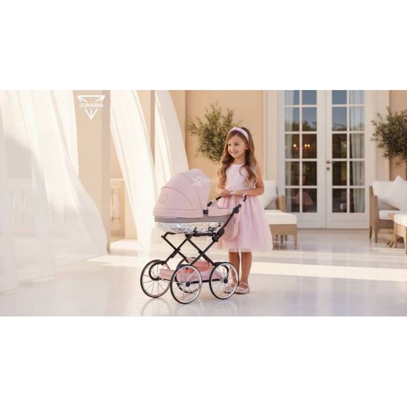 Wózek dla lalek Junama Hand Craft Mini Glitter to elegancki, luksusowy model, który wygląda jak prawdziwy i zachwyci każdą dziewczynkę. Dzięki solidnej konstrukcji, wspaniałym dodatkom i regulowanej rączce oferując wiele lat wspaniałej zabawy. W wersji Classic na dużych kołach w stylu Retro. To doskonały prezent, który sprawi, że Twoje dziecko poczuje się wyjątkowo.