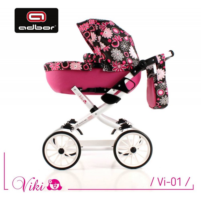 Wózek Adbor VIKI z różową gondolą w kwiatuszki zachęca do kreatywnych zabaw i pobudzania wyobraźni dziecka.