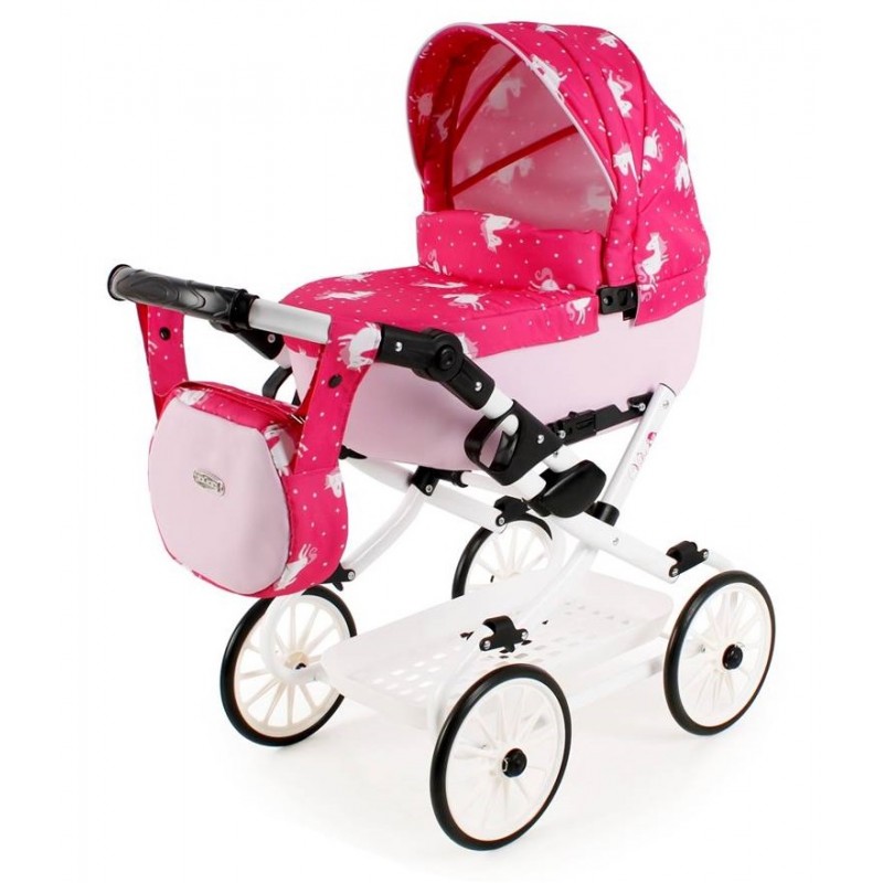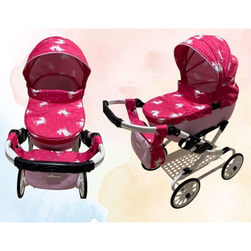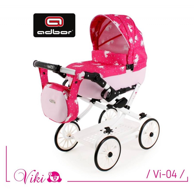 Wózek dla lalek Adbor VIKI 04 w różowej odsłonie z jednorożcami to zabawka, która rozwija wyobraźnię i daje mnóstwo radości podczas każdej zabawy.