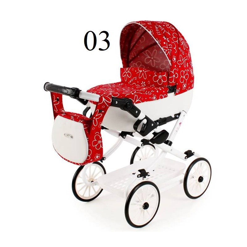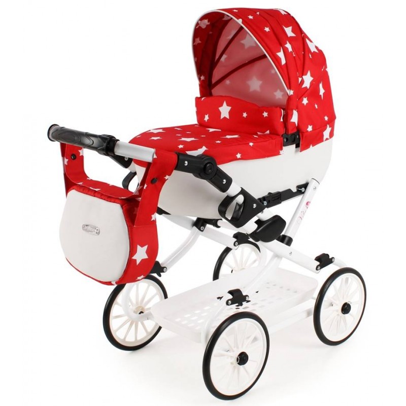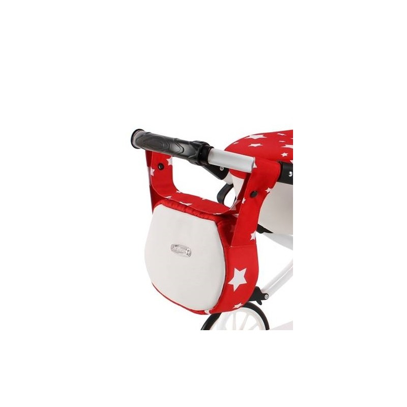 Viki 06 w intensywnej czerwieni z uroczymi białymi gwiazdkami nie tylko przyciąga wzrok, ale też zapewnia bezpieczną i komfortową zabawę. Dół gondoli obszyty elegancką ekoskórą dodaje szyku, a brak ostrych śrub eliminuje ryzyko skaleczeń, dzięki czemu wózek jest w pełni bezpieczny dla dziecka. Składany daszek chroni lalkę podczas spacerów w domu i na świeżym powietrzu. To solidny wózek dla ulubionych zabawek, który rozwija wyobraźnię, uczy troski i daje małej dziewczynce mnóstwo radości podczas zabawy.